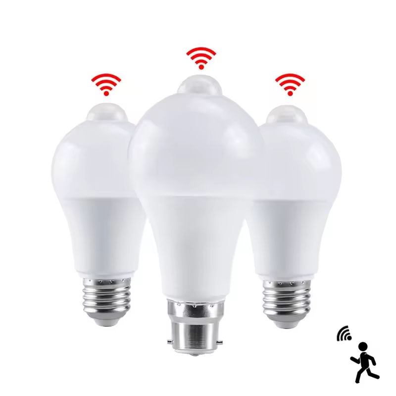 Ampoule LED 9W avec détecteur de mouvement infrarouge, détecteur de mouvement par rayonnement infrarouge, lumière de sécurité AC110-265V E27/B22, ampoule à détecteur de mouvement PIR