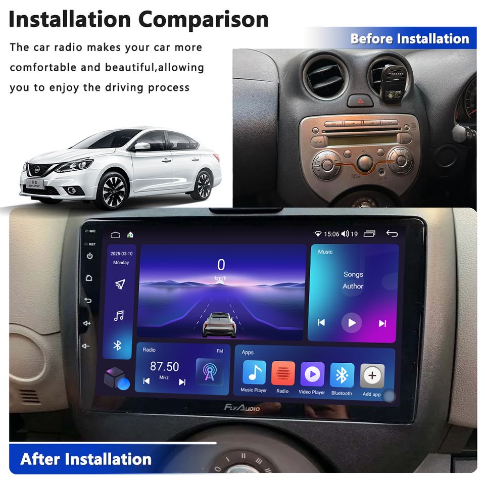 Autoradio Android 9 pouces pour Nissan March K13 Micra 2 + 32 WIFI Carplay AHD 2Din Car DVD Player Navigation Multimedia Player