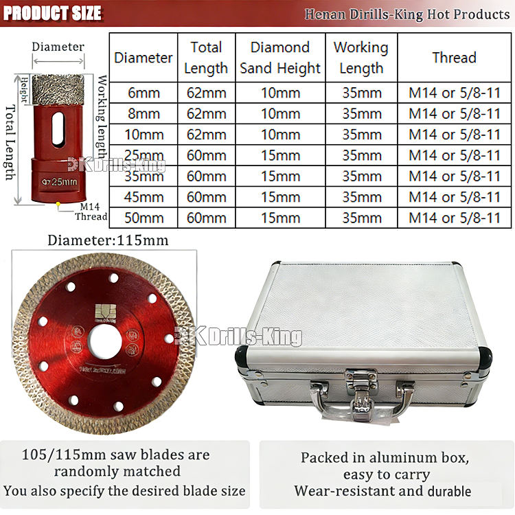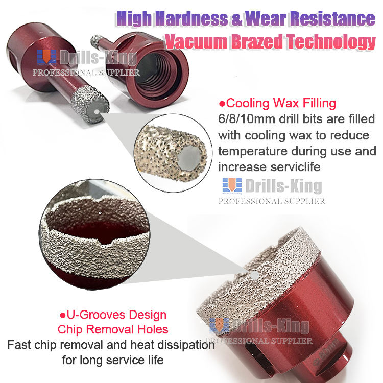 Ensemble de 9 forets diamantés à noyau M14 brasés sous vide, kit de scie cloche diamantée pour carrelage en porcelaine, pour percer le céramique, le granit et le marbre