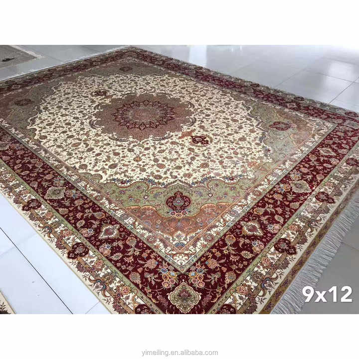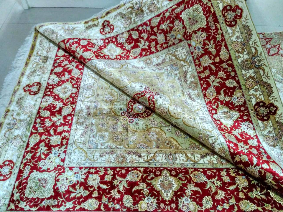 9x12 Large Size 100% Handmade Oriental Persian Silk Area Rug for Sale Red Color with 400L Double Knots for Living Room
