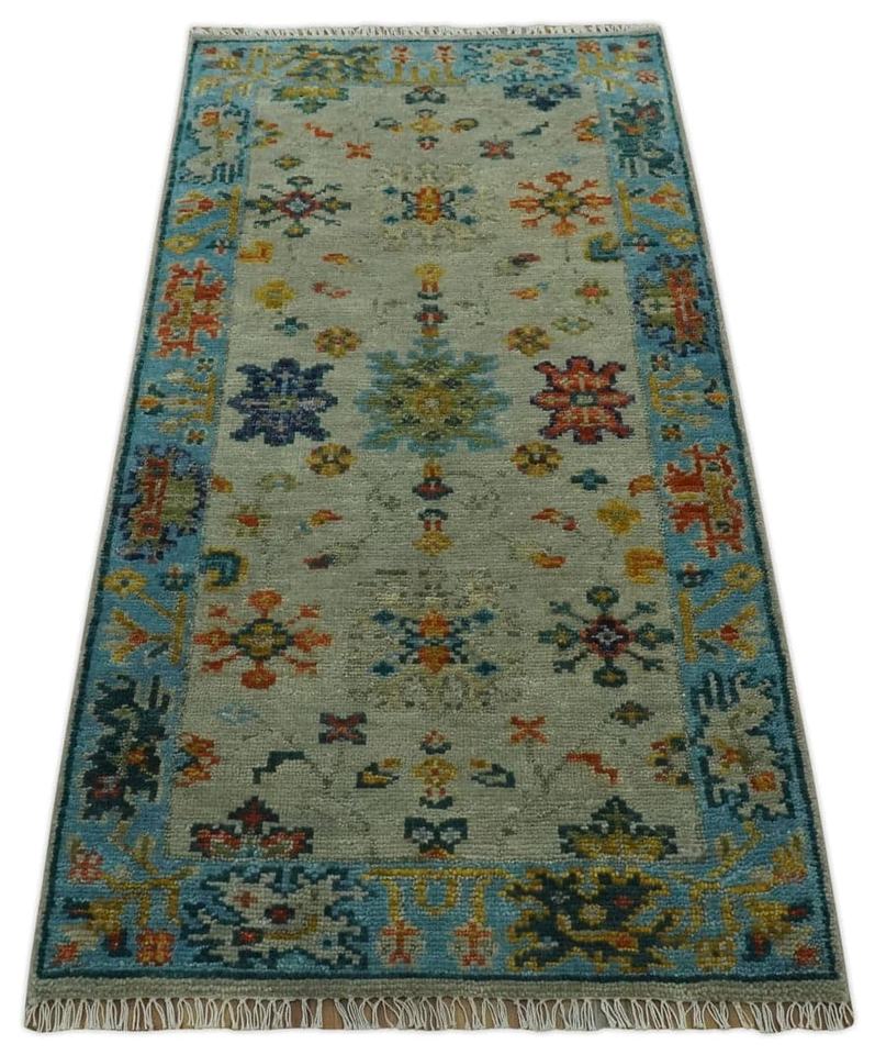 Tapis Oushak Bleu Marine 9x12 Grand Tapis Turc Surdimensionné avec Motif Abstrait Beige et Design Abstrait