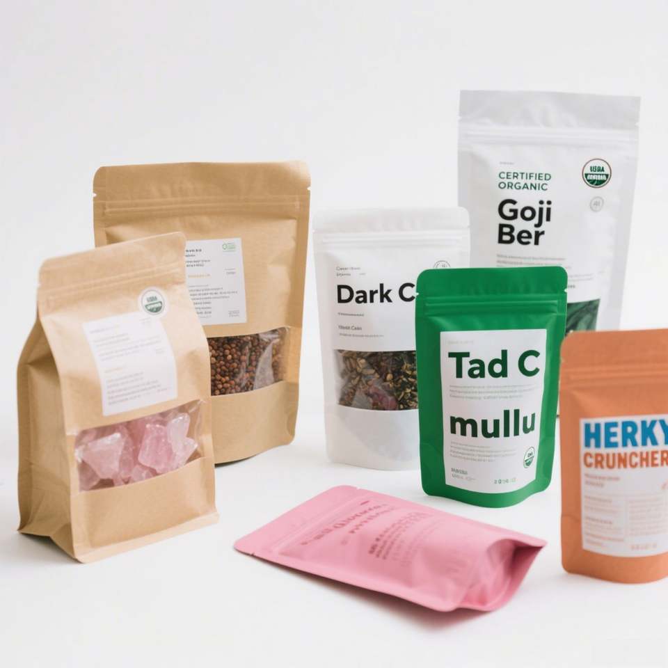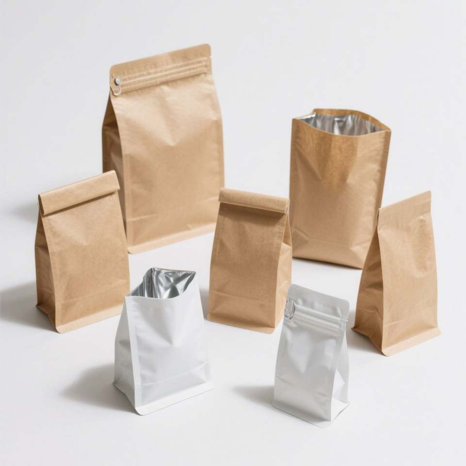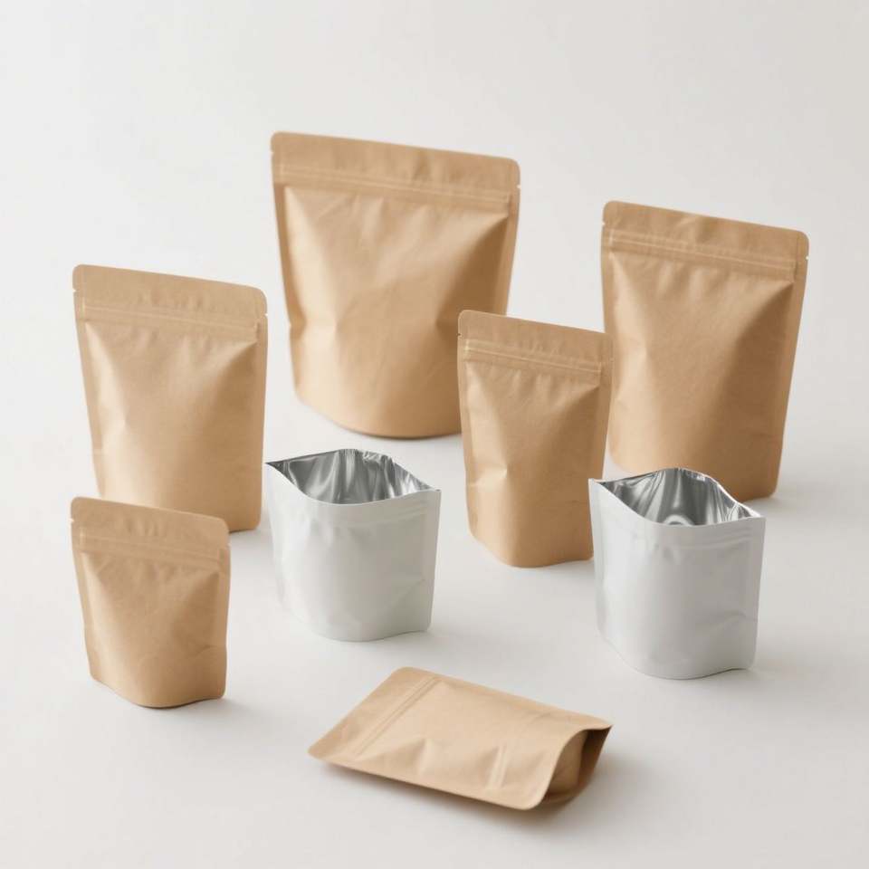Pochette en papier kraft 9x14cm RTS marron à fermeture éclair plate, imprimée en héliogravure, résistante à l'humidité, sans BPA