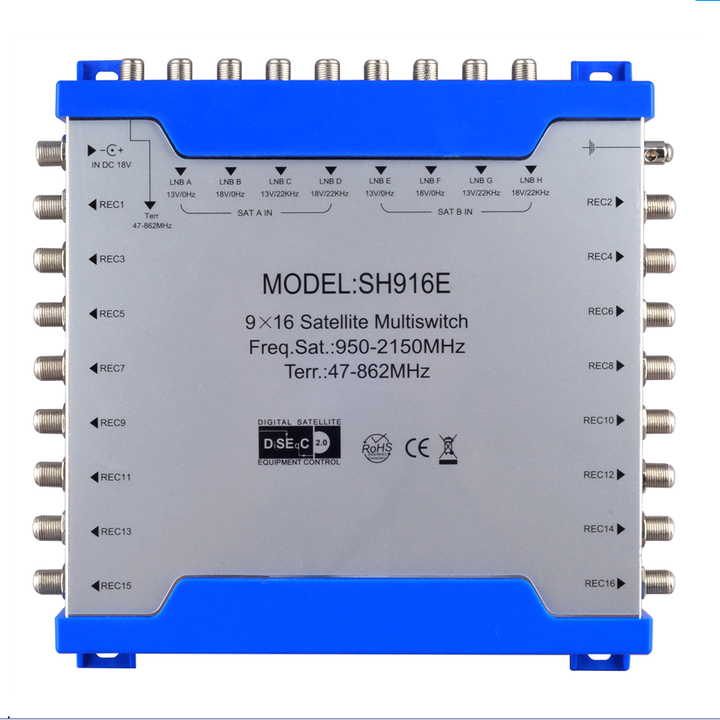 Multicommutateur satellite autonome 9x16 DisEqC 2.0 signal 9 entrées 16 sorties