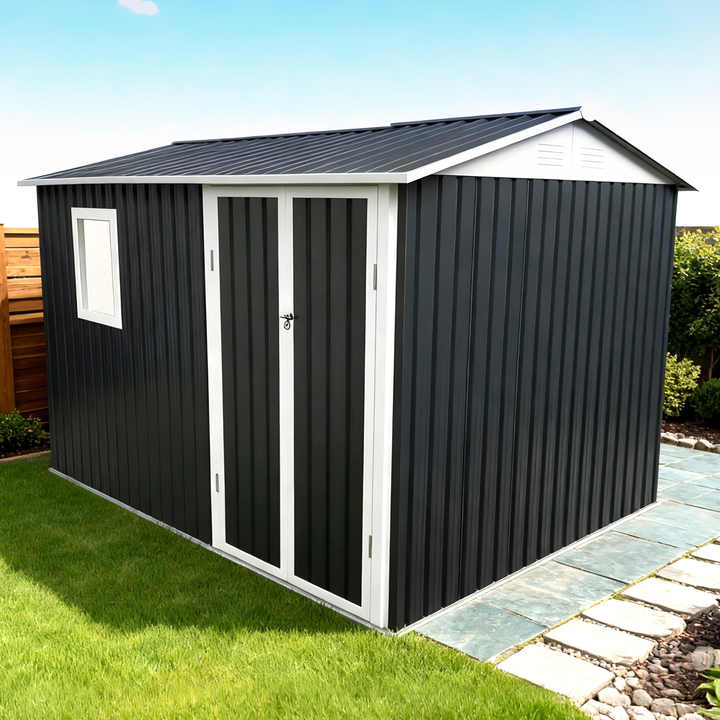 Abri de jardin extérieur DIY 9x6 pieds, kits de garage faciles à assembler, abris de jardin imperméables, construction métallique durable
