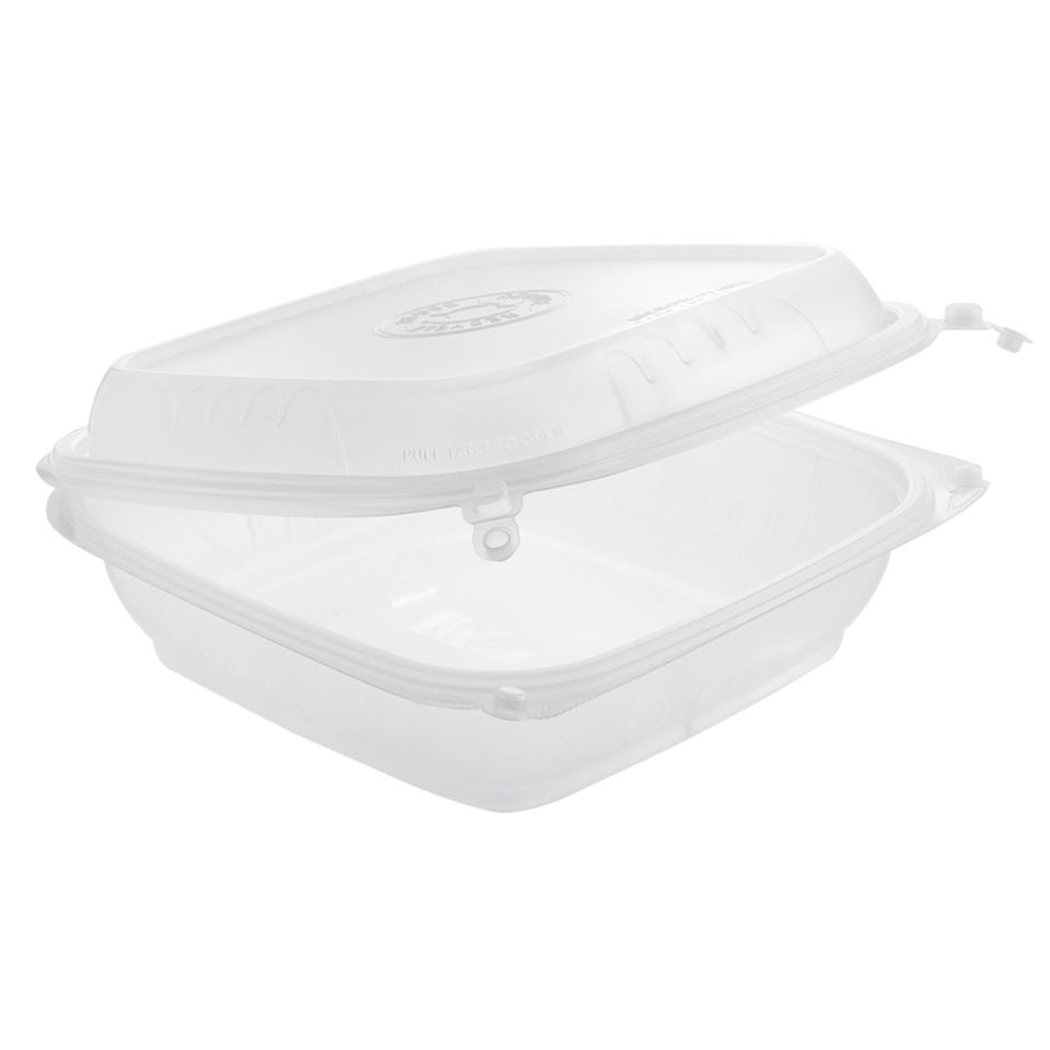 Plateau à emporter en PP de 9x9 pouces avec joint inviolable pour nouilles sandwiches pizzas hamburgers chips de pommes de terre manipulation en relief