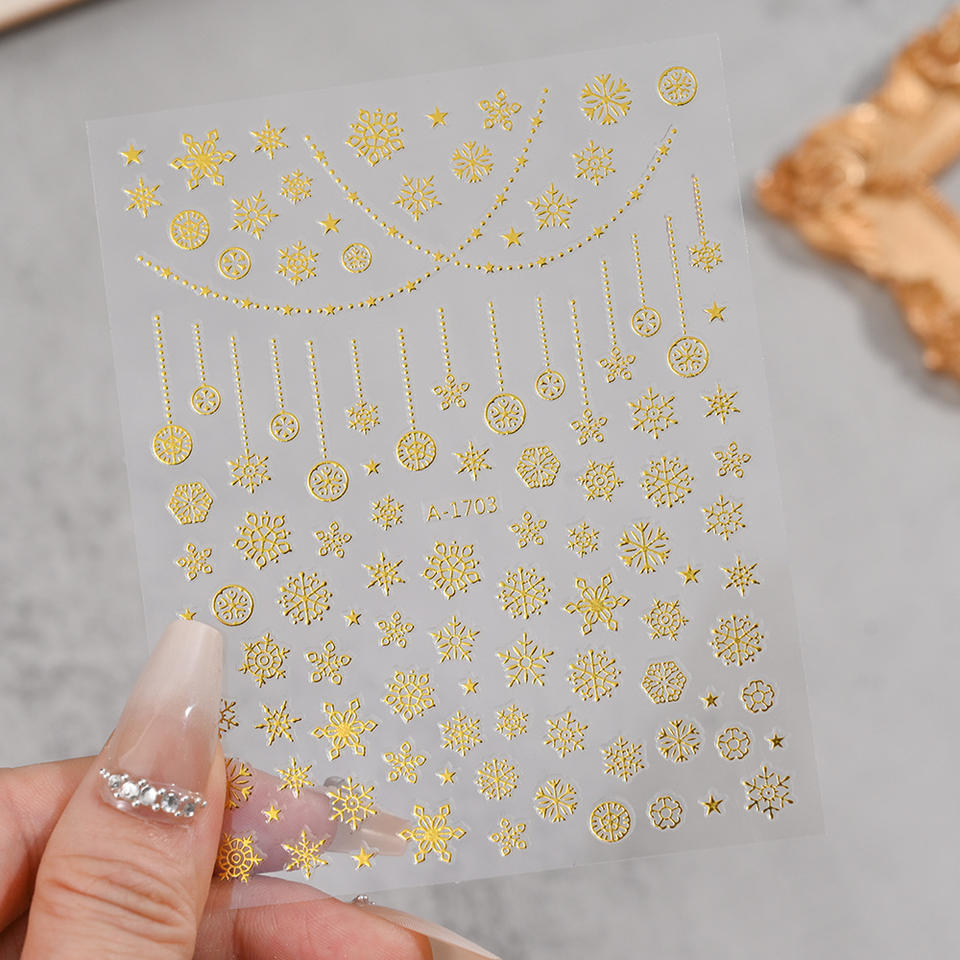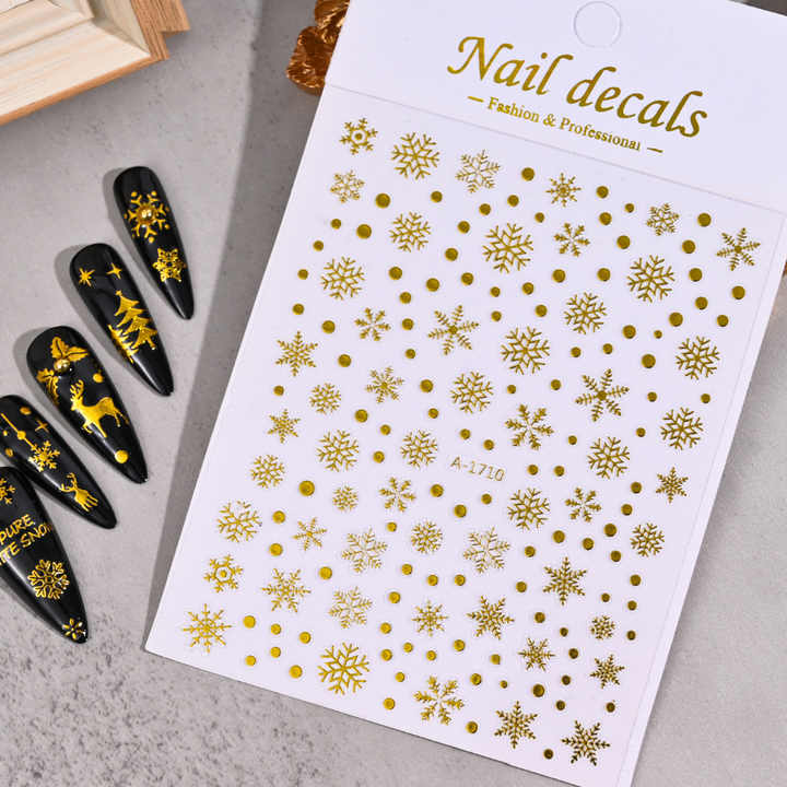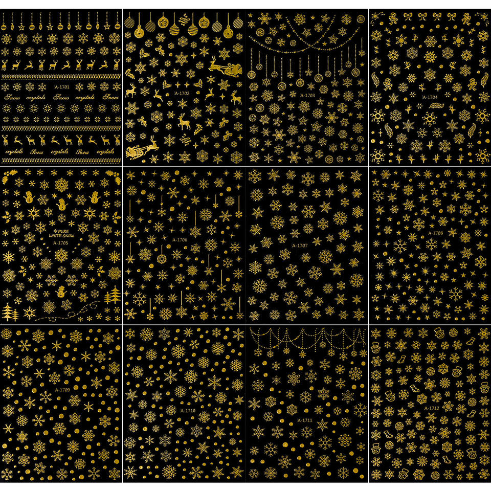 Autocollants pour ongles en forme de flocon de neige doré A-1710, autocollants pour ongles 3D professionnels à la mode pour l'hiver, Noël, DIY