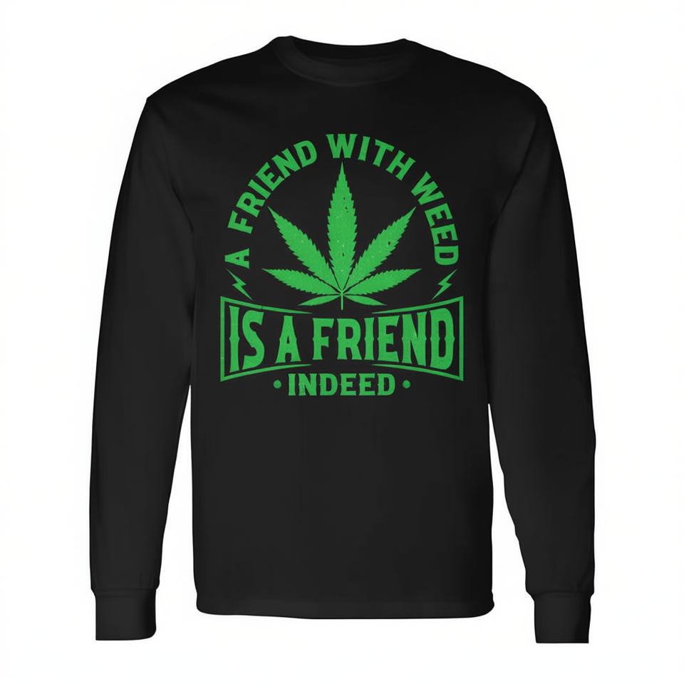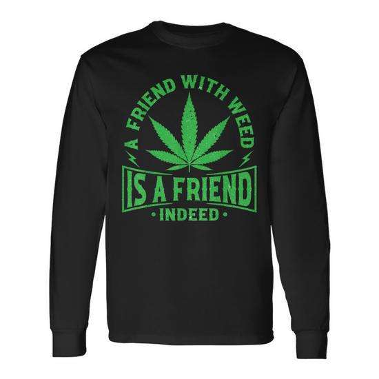 A Friend With Weed Is A Friend Indeed Long Sleeve T-Shirt Cotton Crew Neck Unisex Adult Promotional