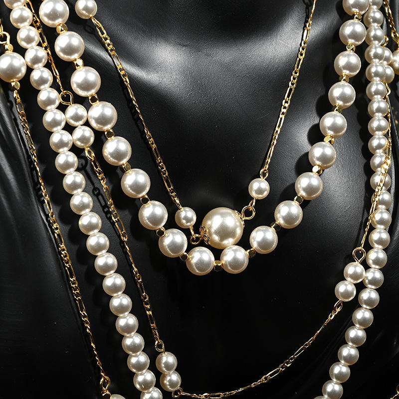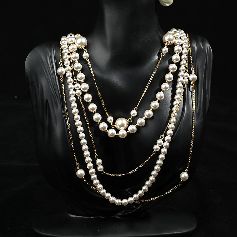 Ensemble de colliers luxueux haut de gamme et élégants, avec un long collier multicouche en perles de Shijia à forte luminosité et fermoir en cuivre