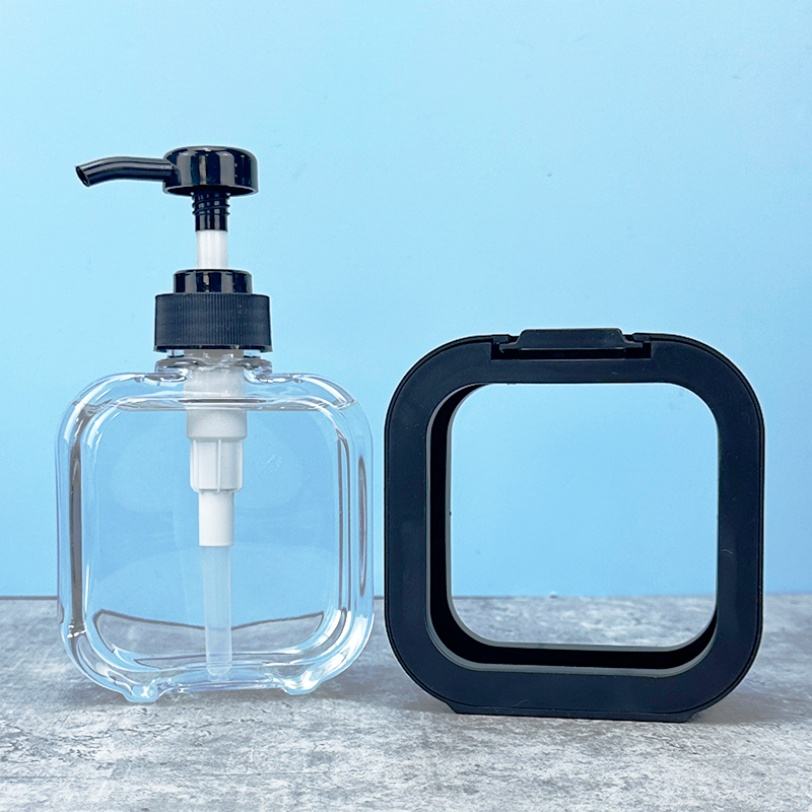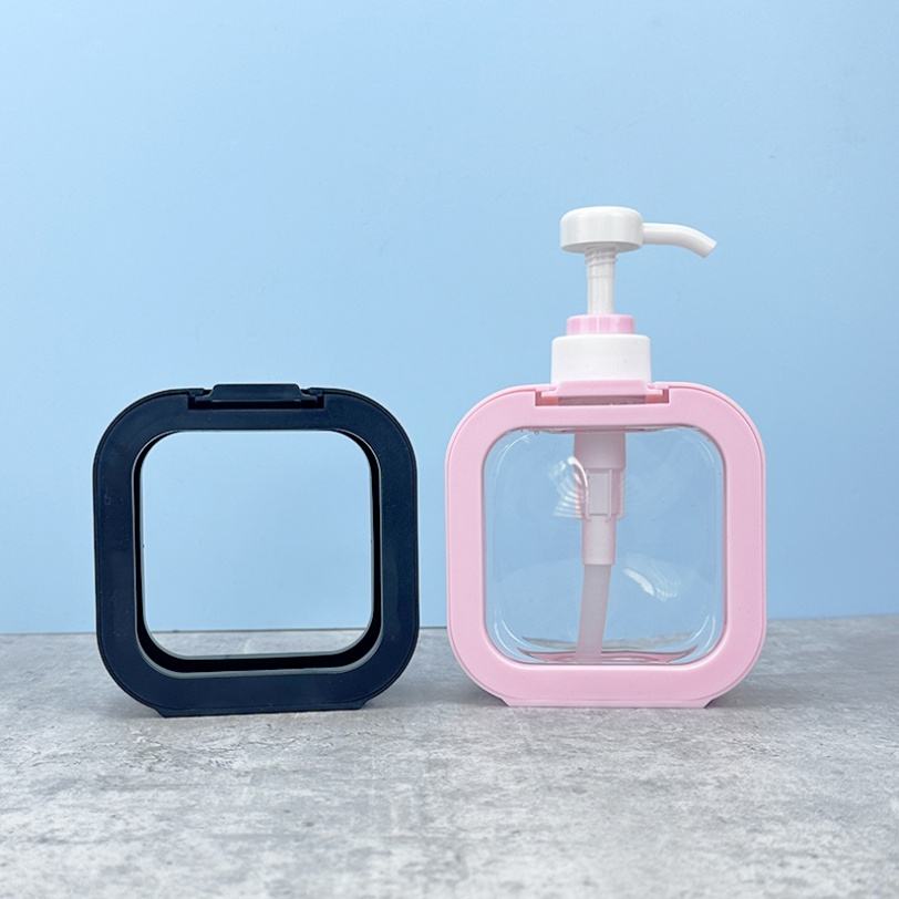Grandes bouteilles carrées transparentes noires et roses en PETG de 300 ml et 500 ml, vides, avec pompe, pour lotion, savon liquide et produits de lavage.
