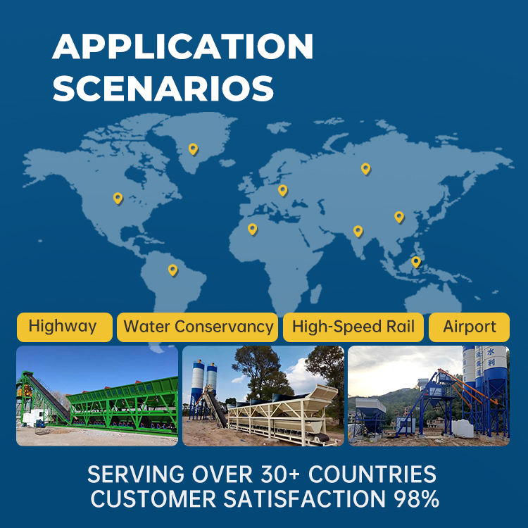 Un équipement de mélange de béton à quatre bacs à grande échelle sans fondation avec une capacité de production de 180 mètres cubes par heure