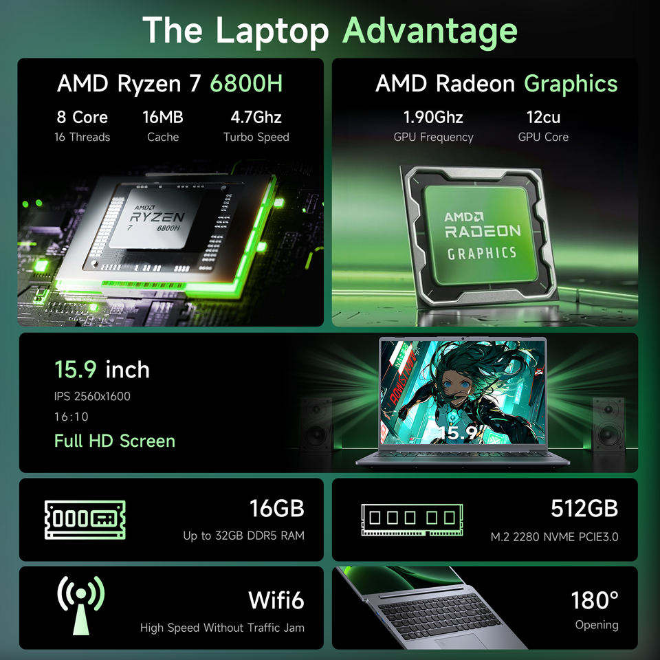 Ordinateur portable A M D RYZEN 9 neuf, SSD NVMe 1000 Go, 32 Go de DDR5, 2,66 GHz, carte dédiée, 1366x768, 144 Hz, prise US, ordinateur portable de jeu