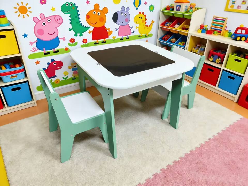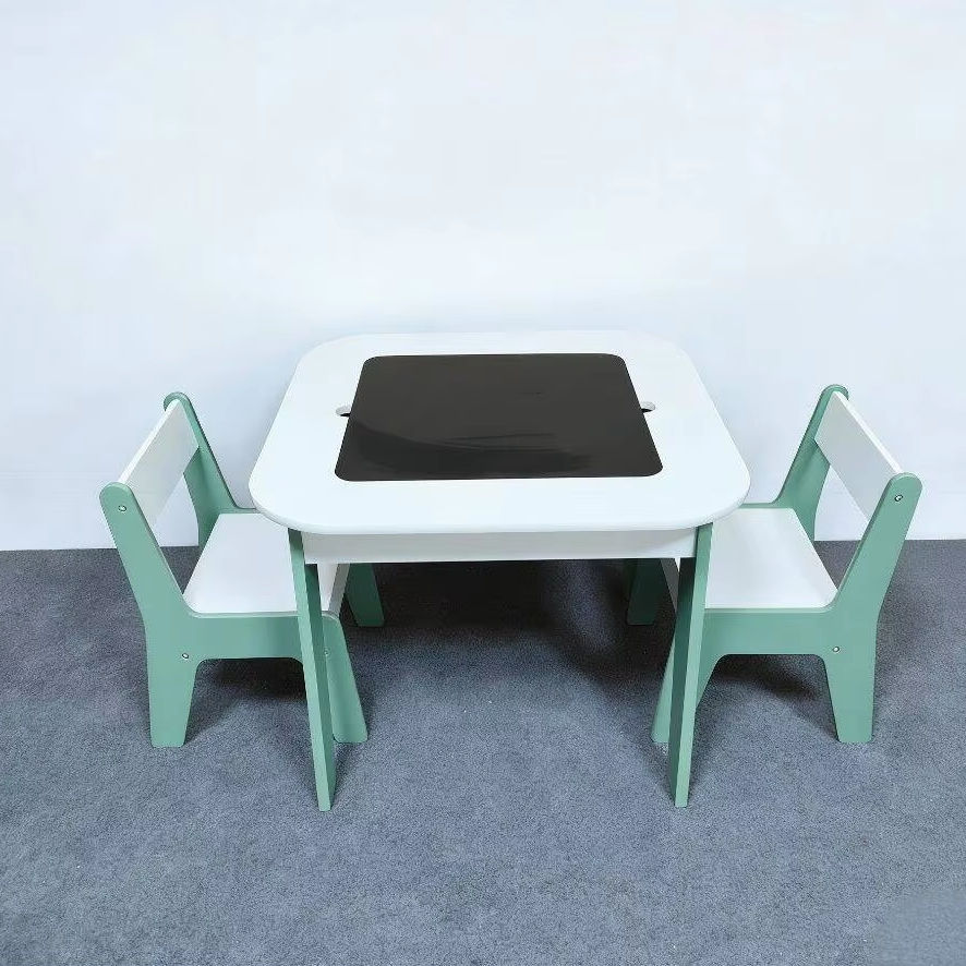 Ensemble de table et de chaises pour enfants multifonctionnel, moderne, simple et élégant, en combinaison de couleurs blanc et vert
