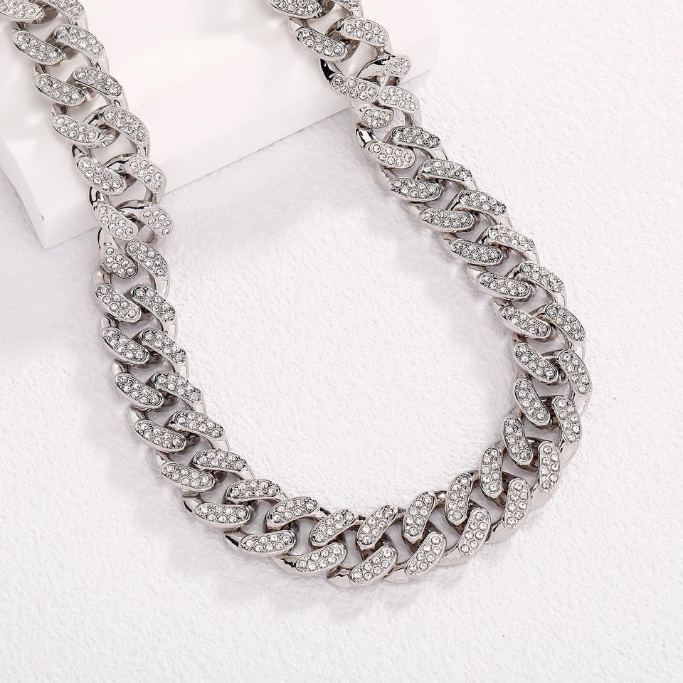 Un collier cubain Miami à rangée unique de 14 mm, populaire et classique, pour les rappeurs transfrontaliers dans la mode européenne américaine