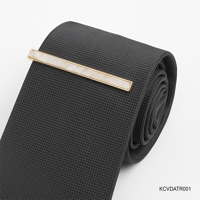 A Premium 18K Gold-Plated Tie Clip for Men featuring White Agate Fengshui Gemstones (KCVDATR001) from the Tinh Vu Collection
