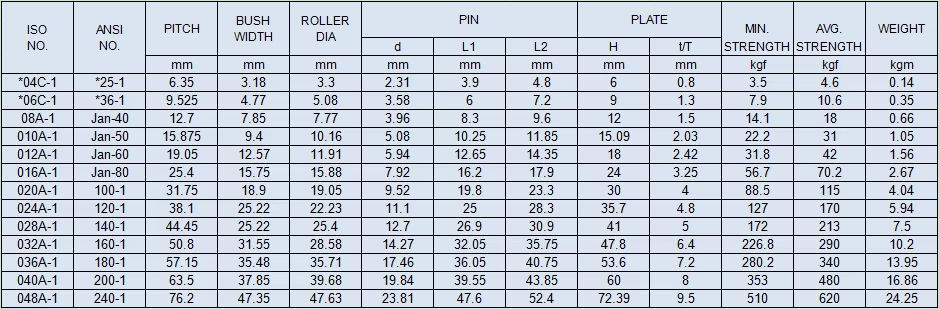 Chaîne à rouleauxType