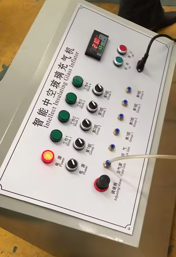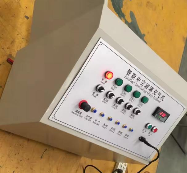 Une petite machine portable pour le remplissage de verre au gaz argon, adaptée à l'utilisation dans les lignes de production de verre isolant.