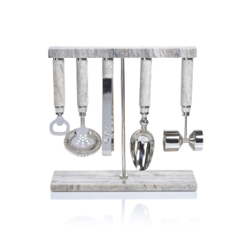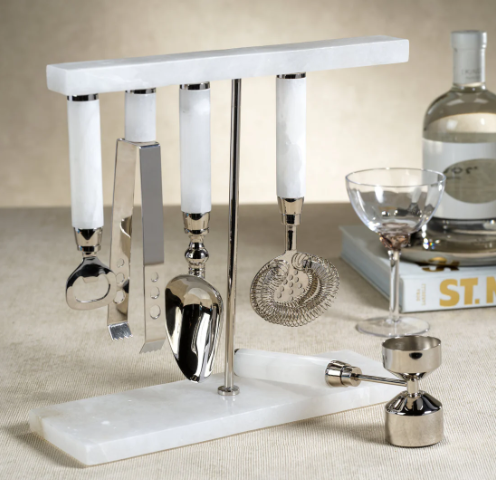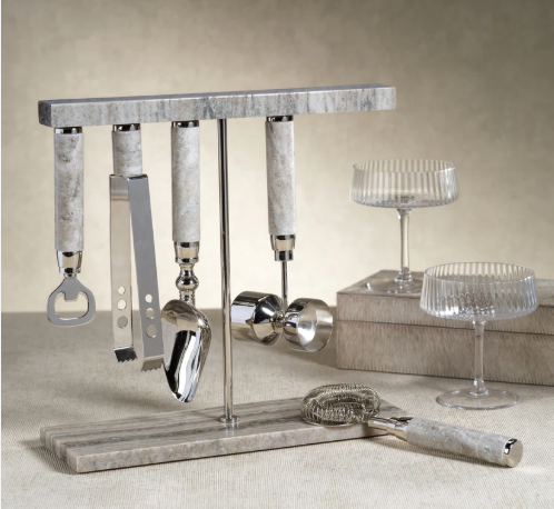 Un ensemble d'outils de bar en acier inoxydable avec poignées et cintre ornés à la main