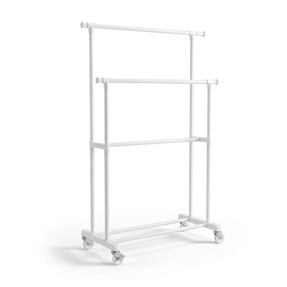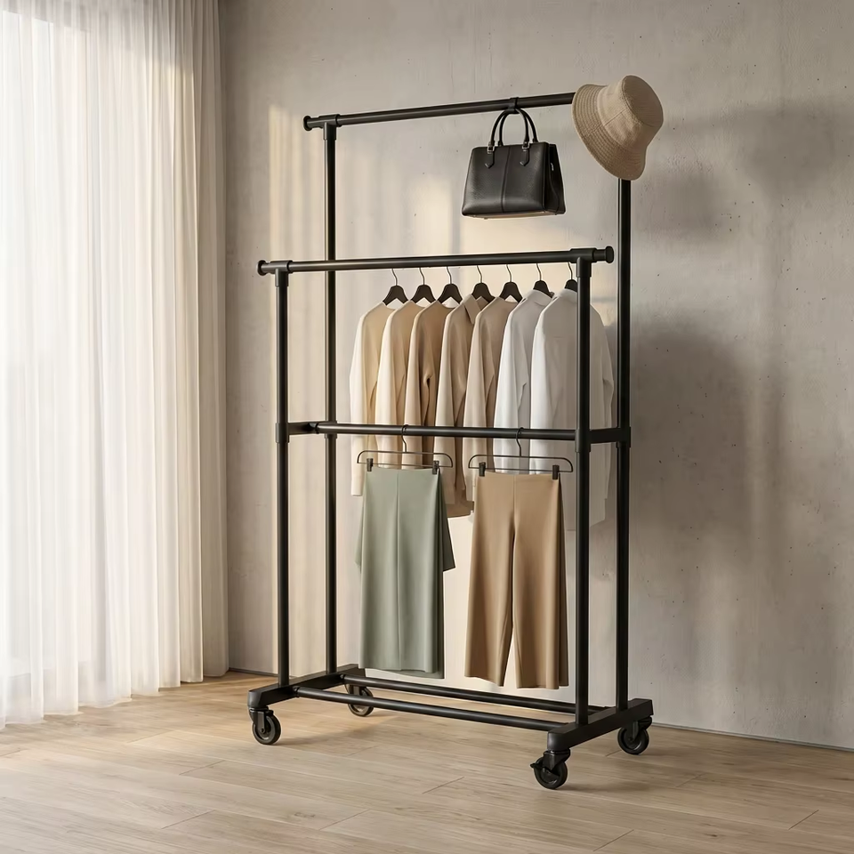 Un porte-manteau à trois niveaux est installé. Rail à vêtements en acier au carbone. Tube de 2,8 cm d'épaisseur. Convient pour la chambre à coucher et le balcon.