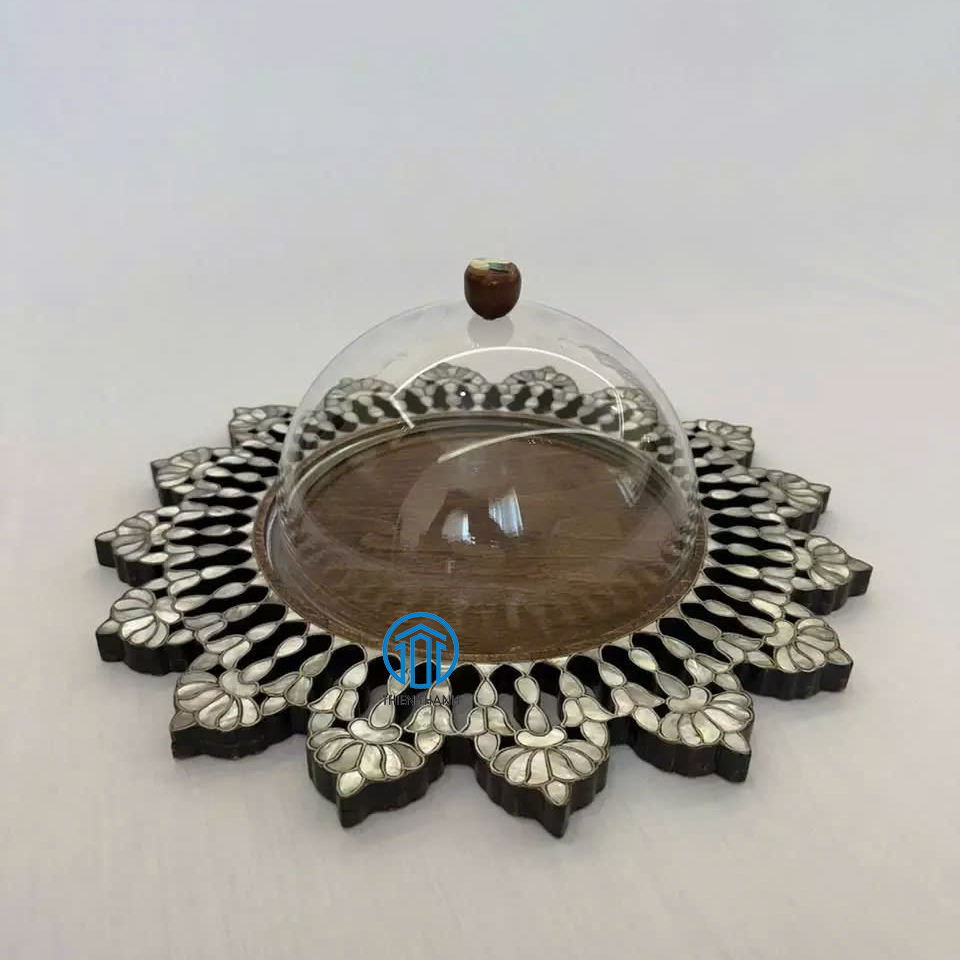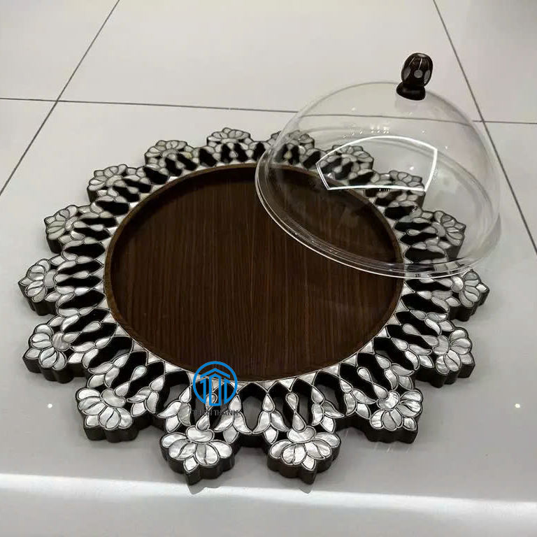Plateau de service Ramadan Eid en bois incrusté de nacreNom du produit