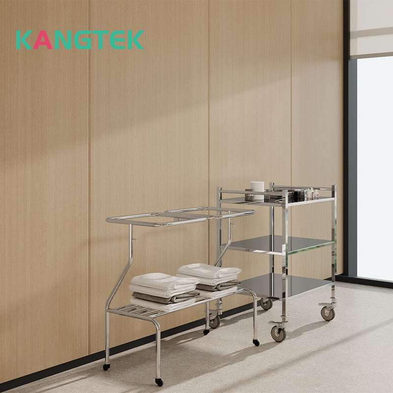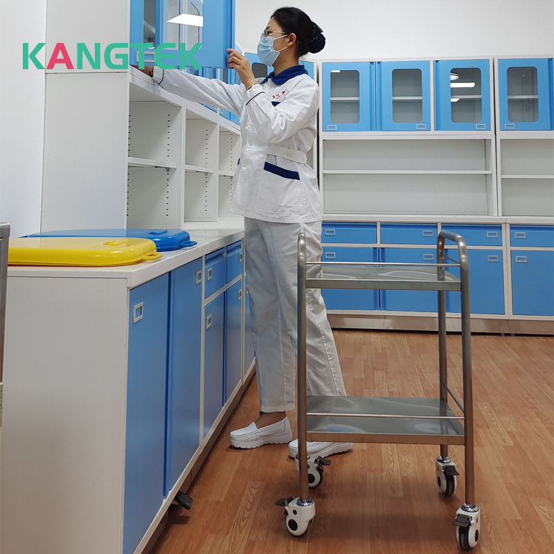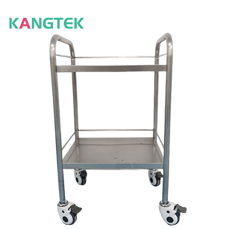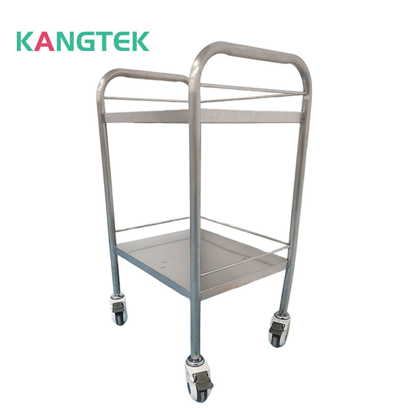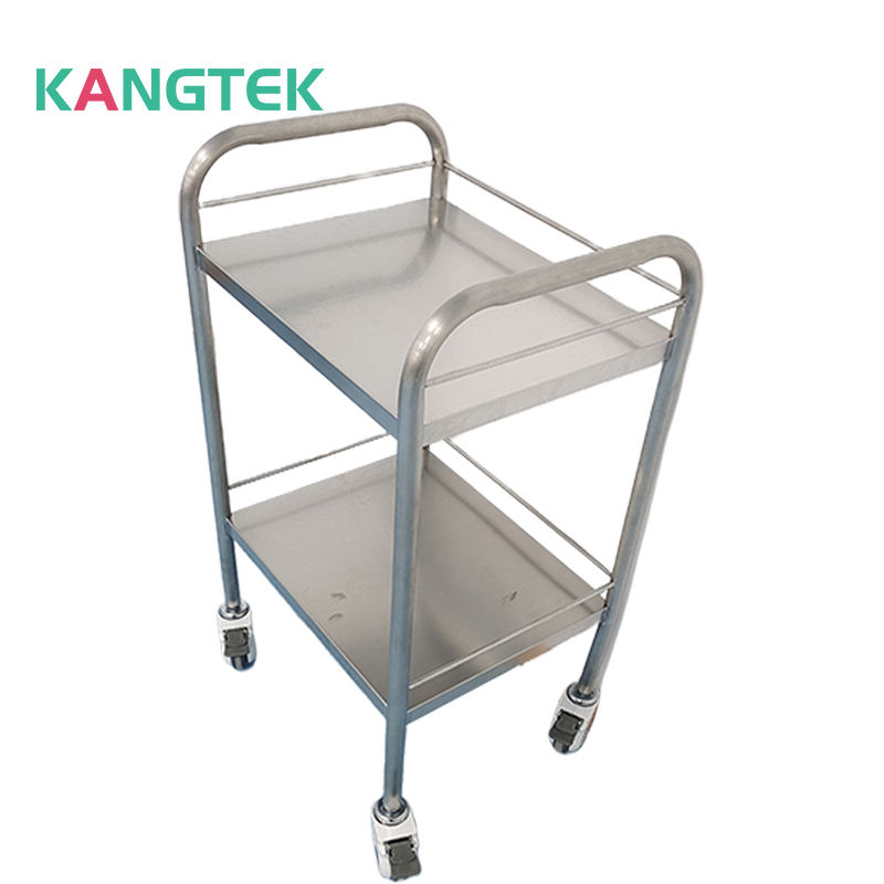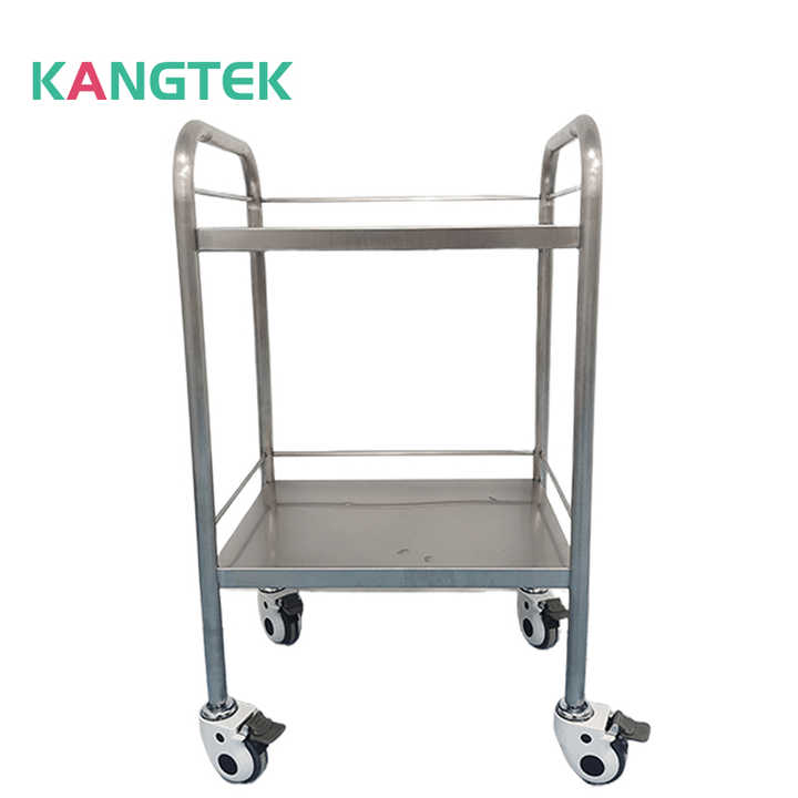 A Two-storey High Quality Stainless Steel Trolley for the Wheels of Medical Clinics