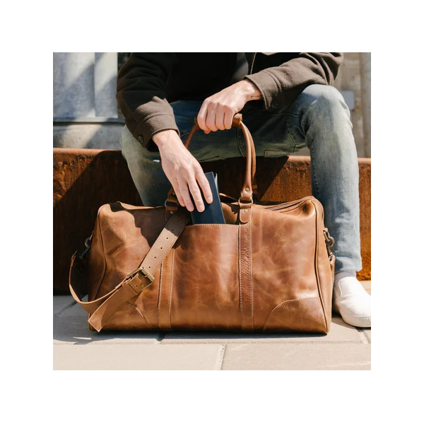 Sac de voyage polyvalent en cuir véritable à 100 %, idéal pour le sport et les séjours de courte durée, parfait pour la gym et les voyages en voiture.