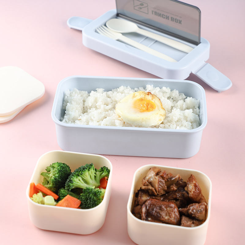 A02 Boîte à lunch de pique-nique scolaire ou de préparation de repas en plein air en plastique de qualité alimentaire avec ustensiles chauffants et couvercle en plastique pour bouteille d'eau