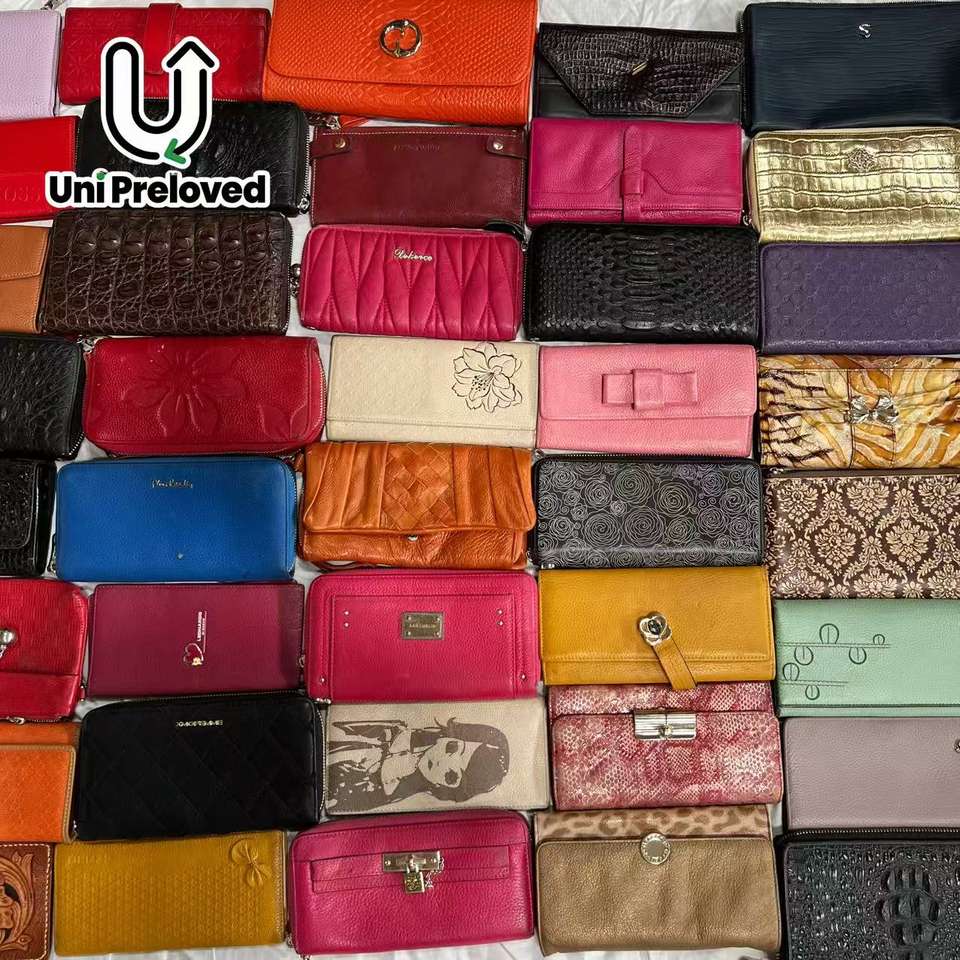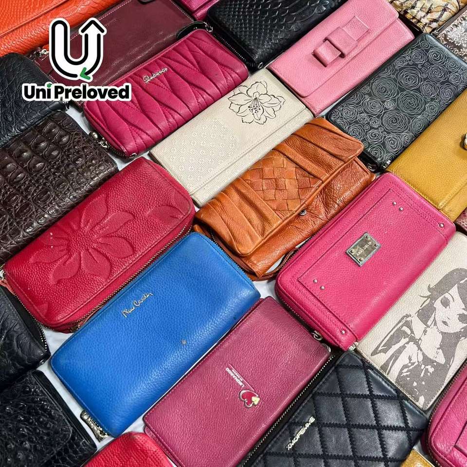 Portefeuille en cuir véritable A11-2, sacs d'occasion en gros, designs mixtes, styles populaires, adaptés à la revente, haute qualité