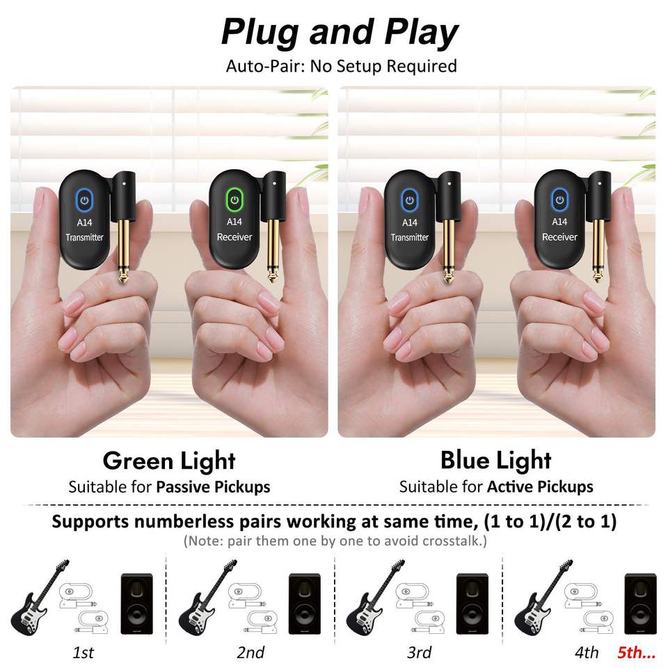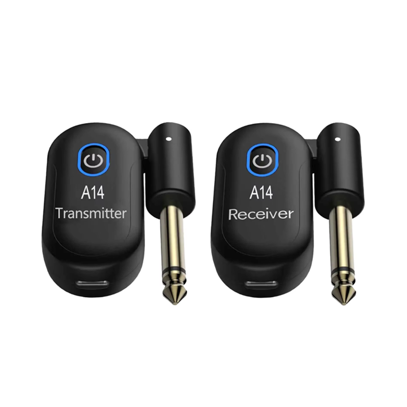 A14 Transmetteur Récepteur Sans Fil Rechargeable avec Fiche Pivotante pour Guitare Électrique, Basse, Violon et Autres Instruments de Musique – Capteur et Accordeur Métallique