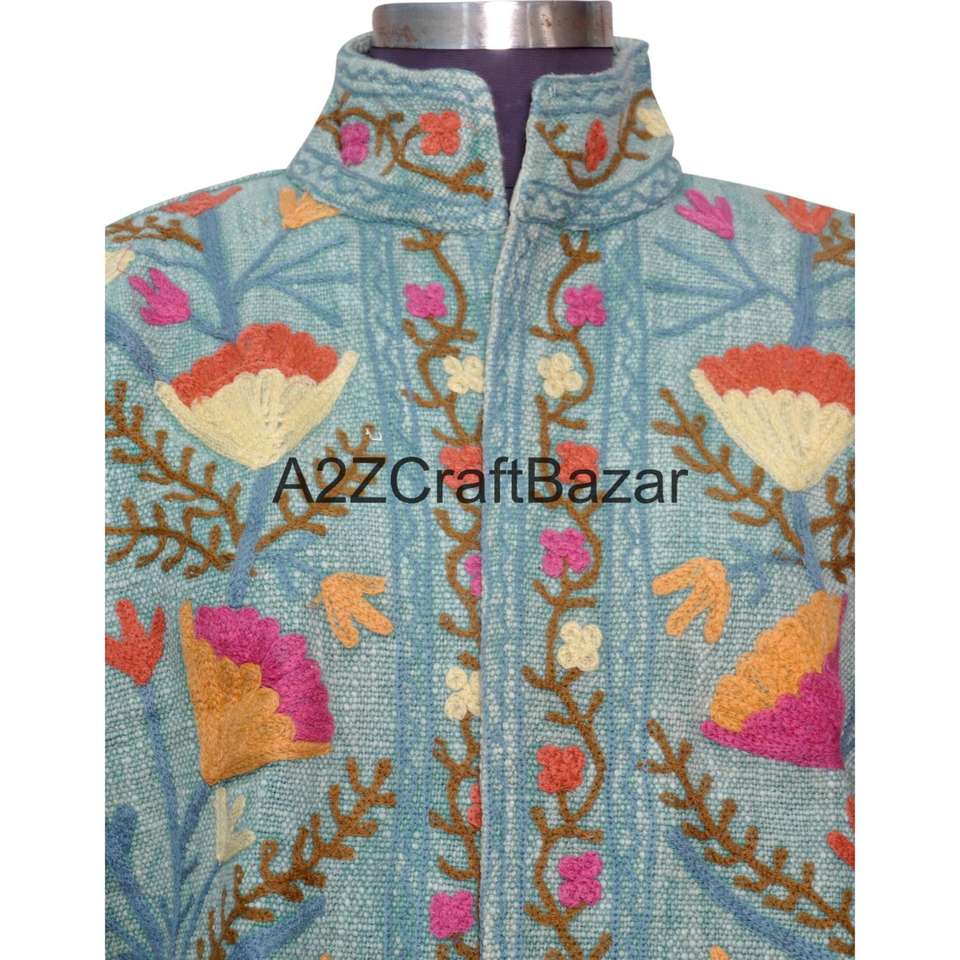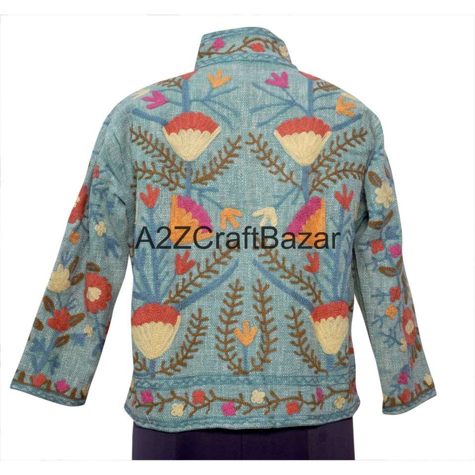 Veste A2ZCraftBazar TNT à broderie machine, volants, motif floral, col en V, 100% coton, décontractée, écologique, hiver/printemps/été