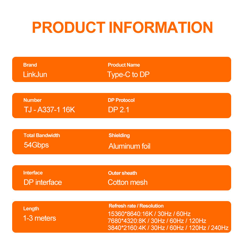 Product Name:TJ-A337-1 16K USB C Type C Male to DP Male Adapter Cable