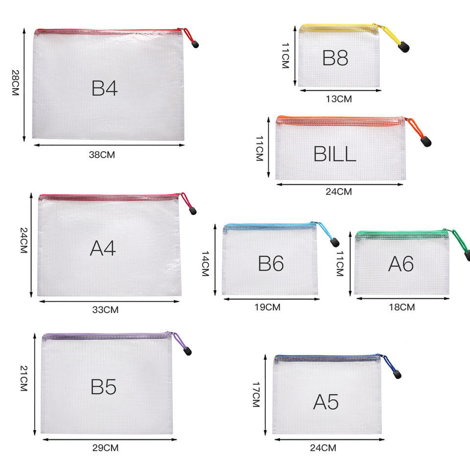 Pochette de classement A4 en PVC imperméable avec fermeture éclair, grande capacité, couleurs assorties, pochettes à fermeture éclair en PVC, porte-documents transparents format A4