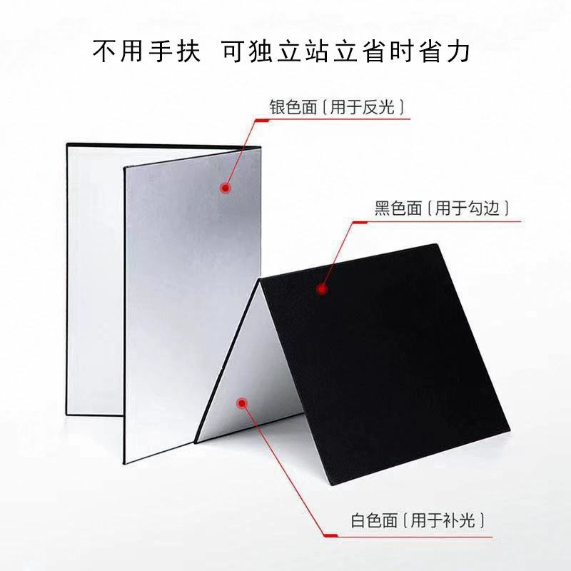 Carte à réflecteur pliable autoportante A4-Papier dur à bords noirs et blancs pour la prise de vue de la lumière de remplissage de la nature morte du produit