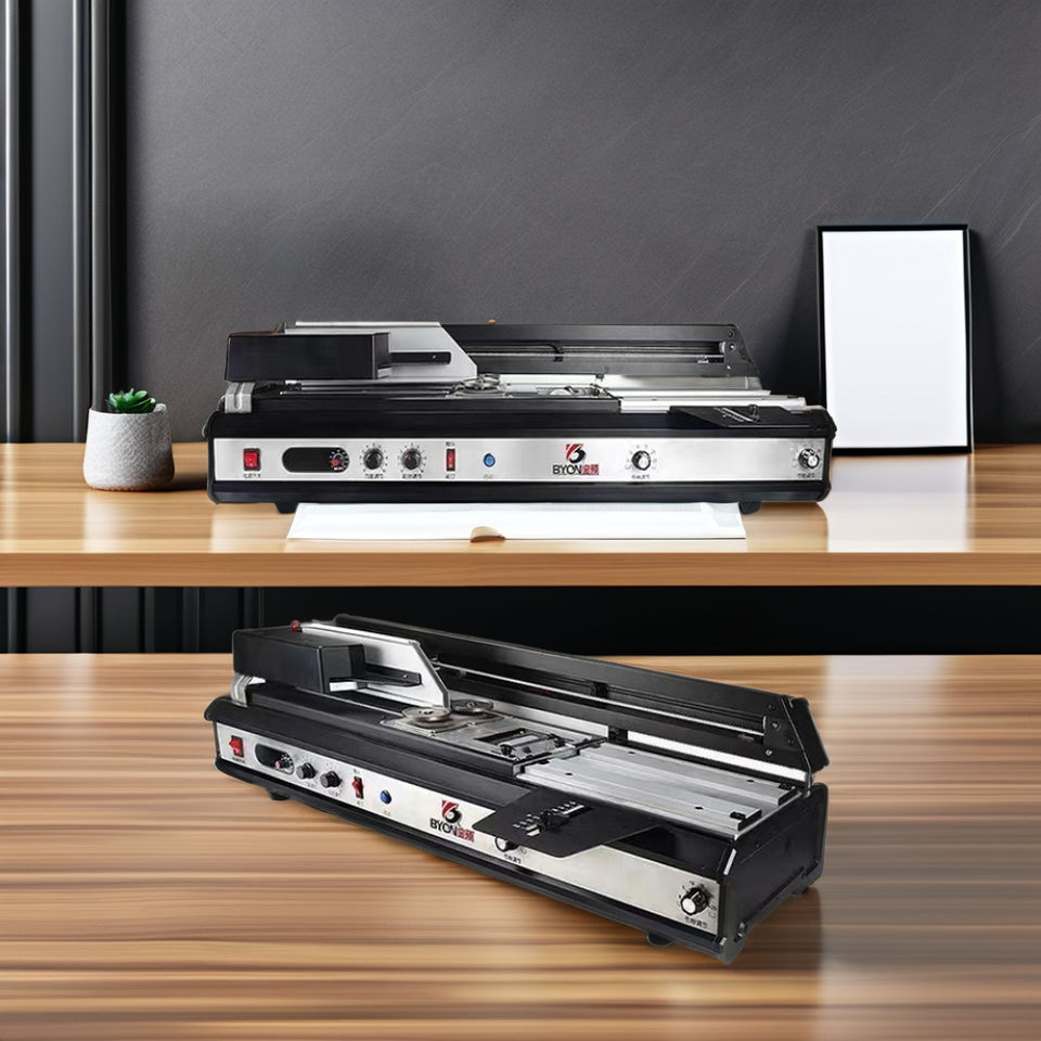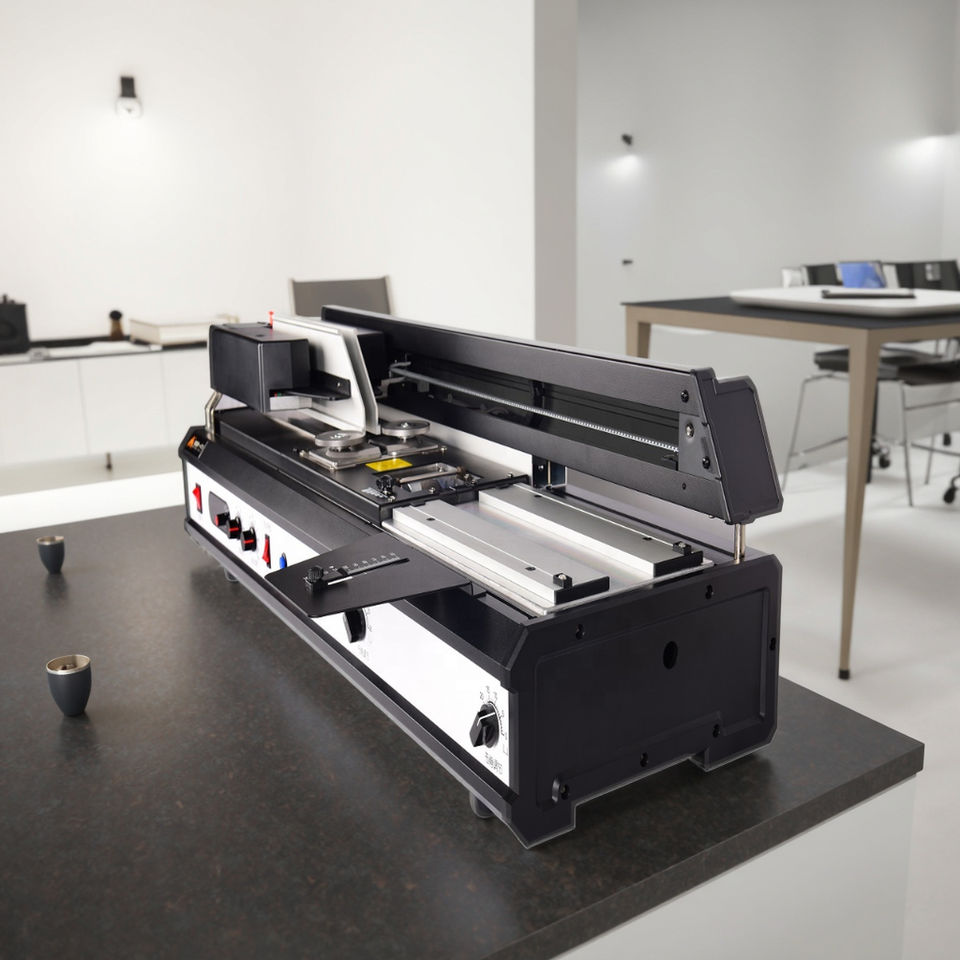 Machine de reliure hot-melt auto A4, 220V/50Hz, 1250W, 145–180°C, chauffe 15–20 min, 1–450 f. (80g) ép ≤4,5 cm, Lmax32cm, sans fil