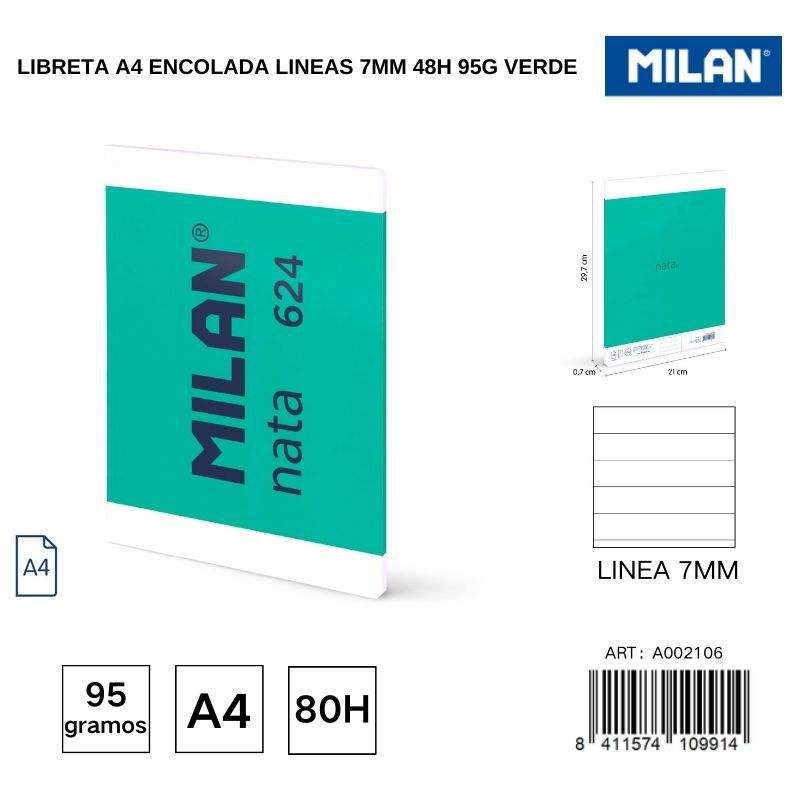 Carnet A4, collé, lignes 7mm, 48h, 95g, vert-Papeterie et carnets