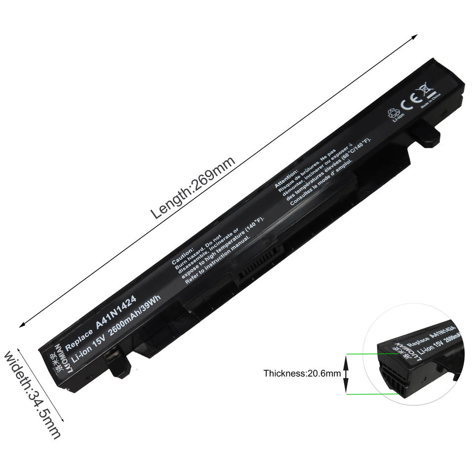 Batterie d'ordinateur portable A41N1424 pour ASUS ROG ZX50 ZX50J ZX50JX ZX50V ZX50VW GL552 GL552VW GL552J GL552JX GL552V