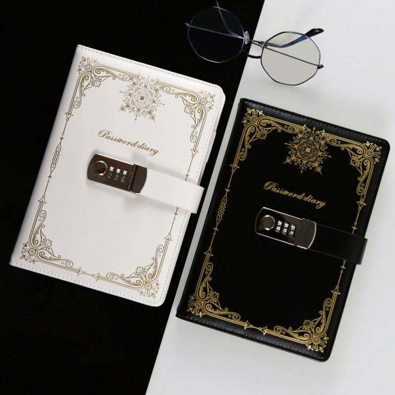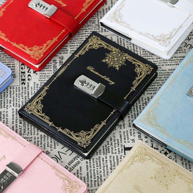 Carnet de notes A5 personnalisé avec logo, en cuir marron rétro, avec anneaux à cadenas codés, pour journal, agenda et budget.