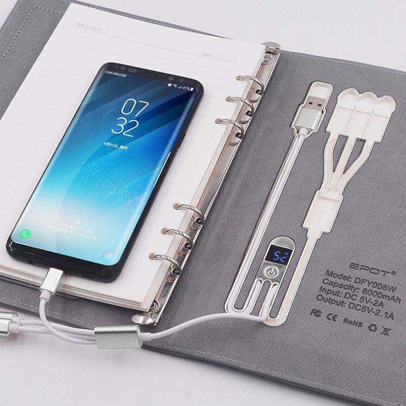 Cahier à reliure rigide avec batterie externe et impression de logo personnalisée