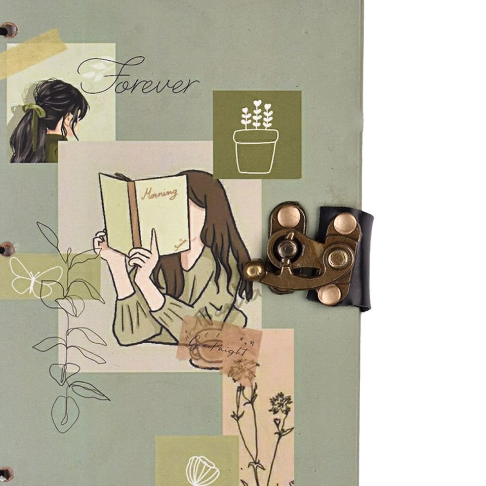 A5 Minimal Floral Handmade Paper Notebook EcoFriendly Journal 100 Pages Double Side Writing Diary with Metal Lock Elegant Design