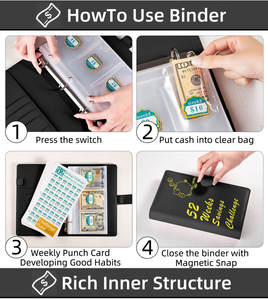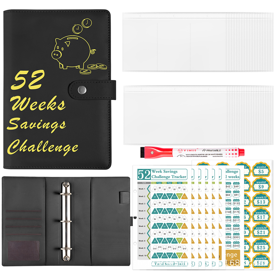 Organiseur de budget A5 pour le défi d'épargne, avec enveloppes de budget pour 52 semaines, classeur à feuilles mobiles