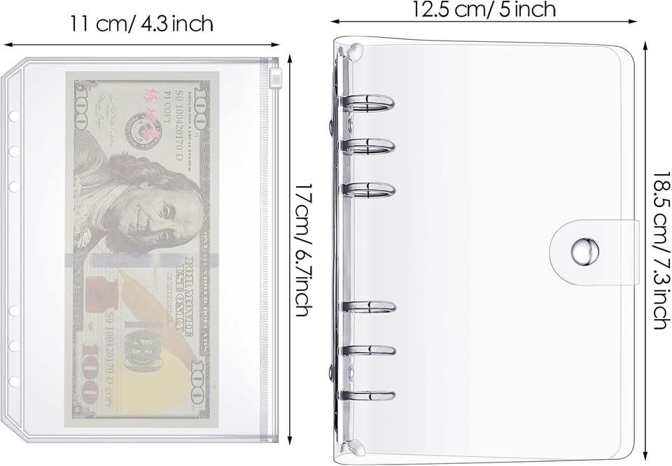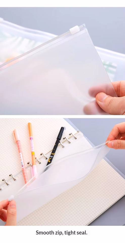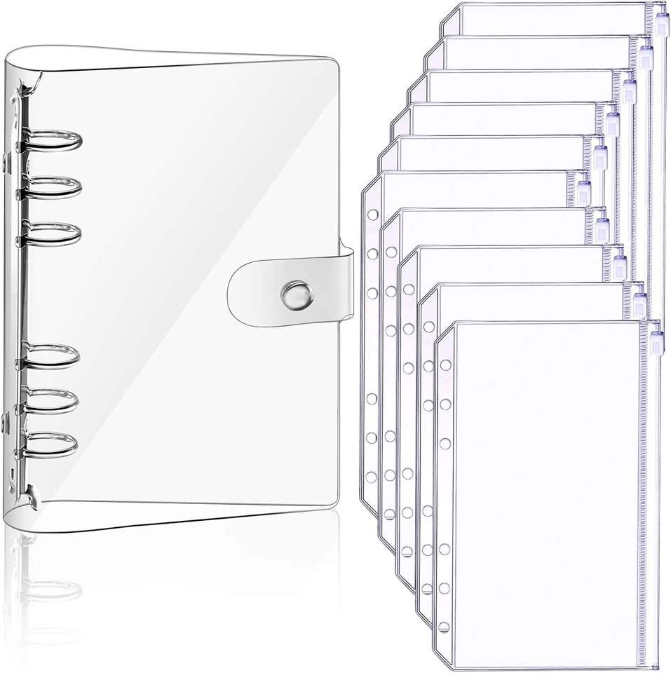 Protège-documents A6 en PVC transparent avec fermeture éclair, pochettes pour classeur 6 trous, pages de planification, recharges, inserts, classeur de rangement pour matrices, dossiers