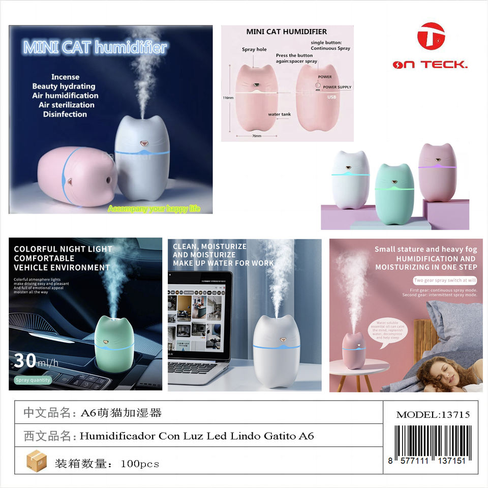A6 Humidificateur portable pour chat, humidificateur, 12 unités, design mignon, hydratant, purificateur d'air, maison et bureau A6