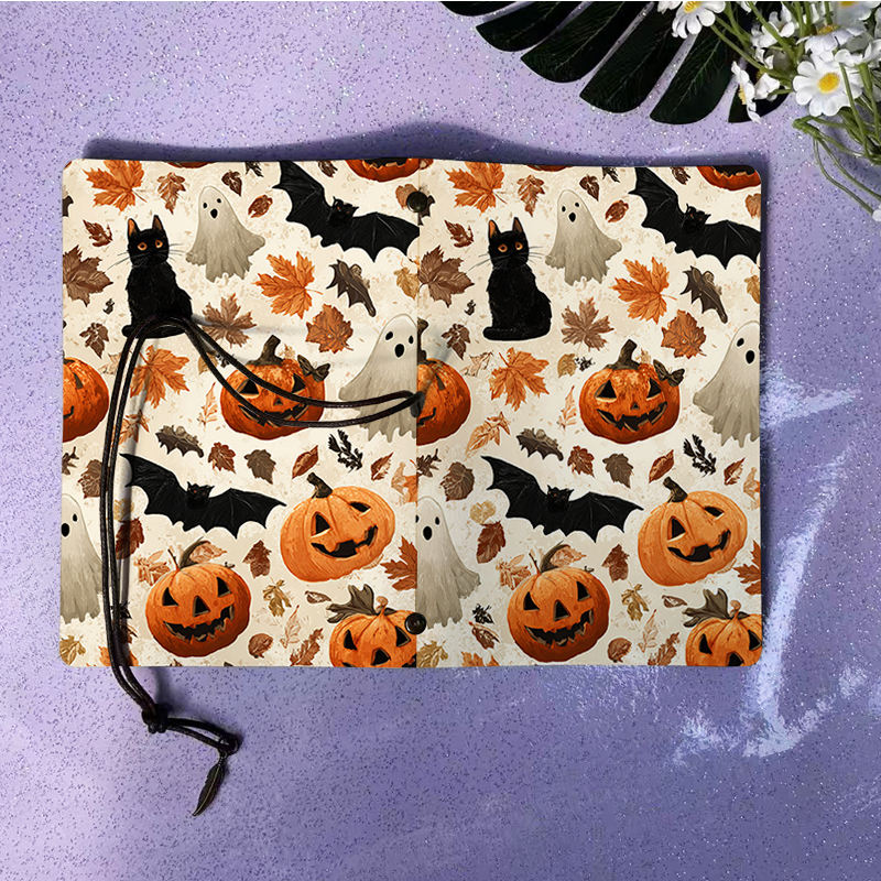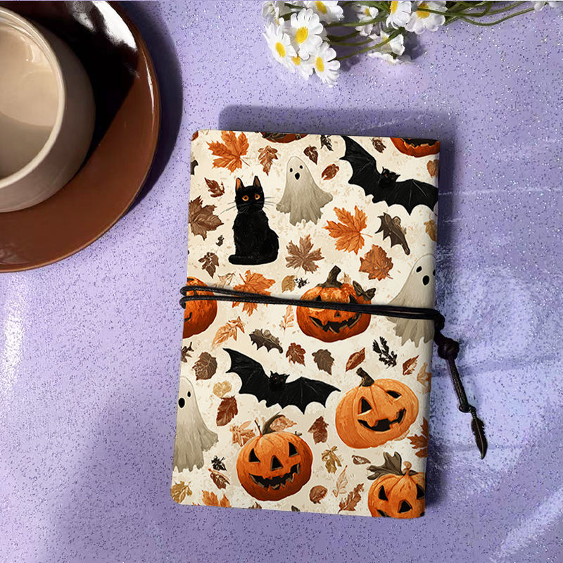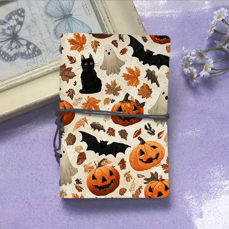 A6 Cahier de notes artisanal Cadeau de rentrée scolaire mignon pour les collégiens Idéal pour les listes de devoirs et les notes d'ami Citrouilles Ghos