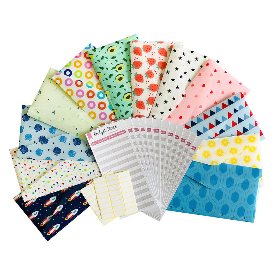 Portefeuille en plastique A6 12 feuilles budgétaires de suivi des dépenses Enveloppes en plastique avec dossiers extensibles