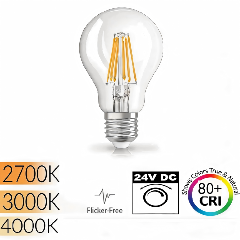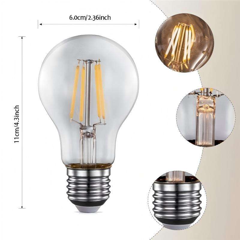 Ampoule LED à filament A60 8W avec culot E27, couvercle en verre, certifiée CE, Ra80, haute efficacité, blanc chaud 2700K, pour éclairage résidentiel