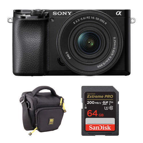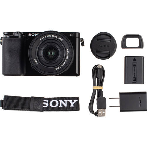 Appareil photo hybride A6100 pour vlog avec objectif 16-50mm F/3.5-5.6 II, double écran, carte SD, pas cher