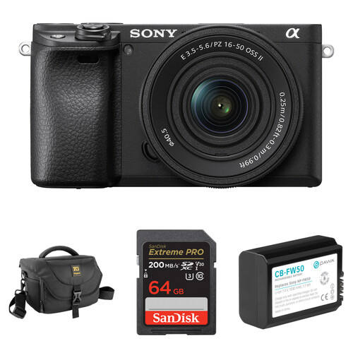 Appareil photo hybride A6400 pour vlog avec double écran, capteur CMOS, construction en verre et objectif 16-50 mm F/3.5-5.6 II