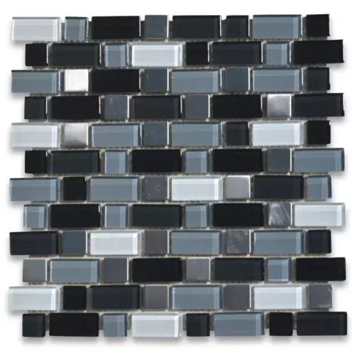 A77003 Glossy Black Grey White Glass Mosaic Tile Stainless Steel Brick Mix for Bedroom Kitchen Bathroom Hotel Wall Decorations