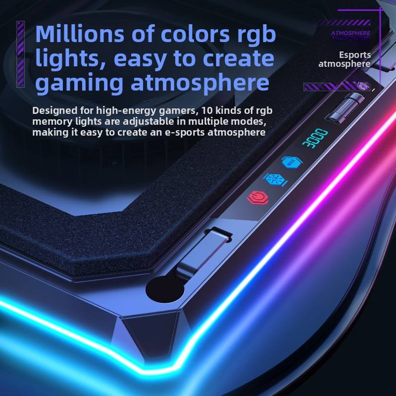 A8 RGB Base Ice Cooling Effect Matière plastique Gaming Laptop Cooler Stand Silent Pressure Wind Cooler
