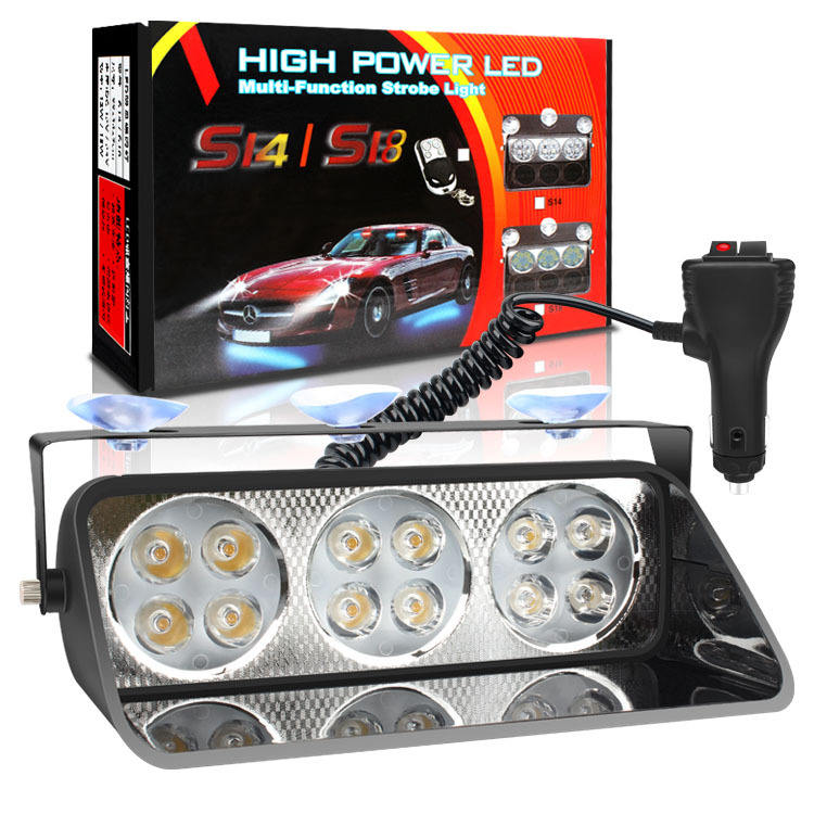 A80 S14 Feux stroboscopiques automobiles 12 LED Rouge et bleu Aspiration Clignotant Rappel central pour voitures et SUV 12V