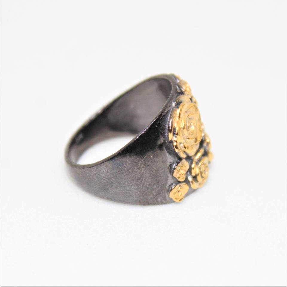 AA + Bague personnalisable en argent sterling 925 rhodié noir faite à la main en Inde Collection de fleurs plaquées or pour les mariages et les fêtes